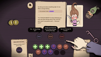 very cute!! chasing down endings is a fun way to spend an hour. only the fact that this was made in 7 days prevents me from assuming there are more hidden endings. stacking personality traits is absolutely the most fun part, and I love that a shiny payment gives you a double trait. that only being relevant for like 1/3 of traits and the possible infinite (?) expansion of the token box possible from particular combinations makes it feel even more fun bc it's something that feels unintended, even though... it definitely was intended. I also really like how Death starts to call you his old friend after the first few deaths.